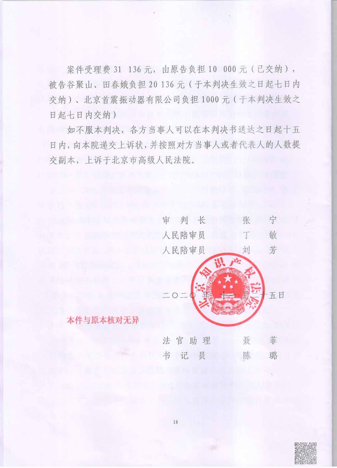 以下為北京市知識產權法院判決書(結論部分)